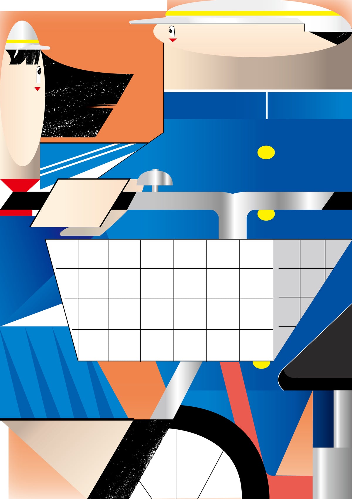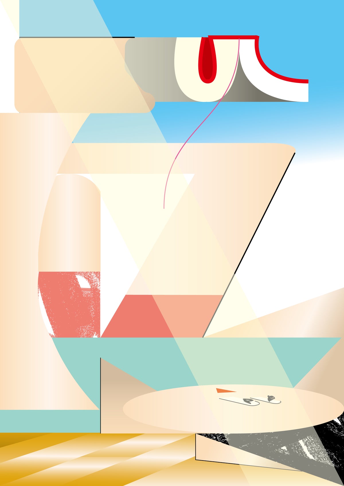 By setting technical restrictions, using only the Illustrator pen tool and the mouse for much of the drawing process, he breaks free from all sorts of personal touches that an artist may have - from happy accidents when drawing lines, to hinting certain emotions, to exerting one's original drawing style. The challenge is to express the organic "Human touch" with inorganic, digital lines.