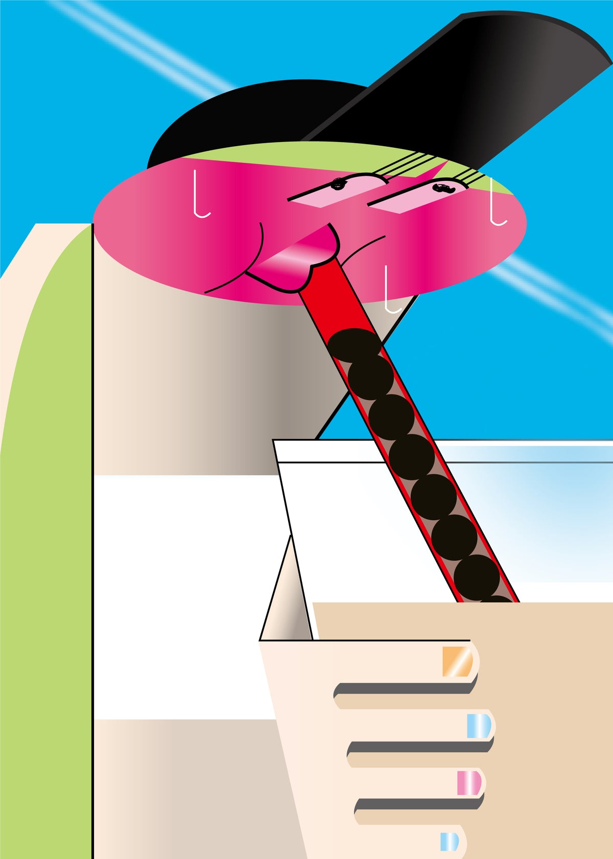 In his illustrations of deformed humans and animals, Naoto Kawashima explores the perfect balance between the awkward and the catchy, which the artist himself describes as "YABAMI (Crazy)" and "KAWAIMI (Cute.)"