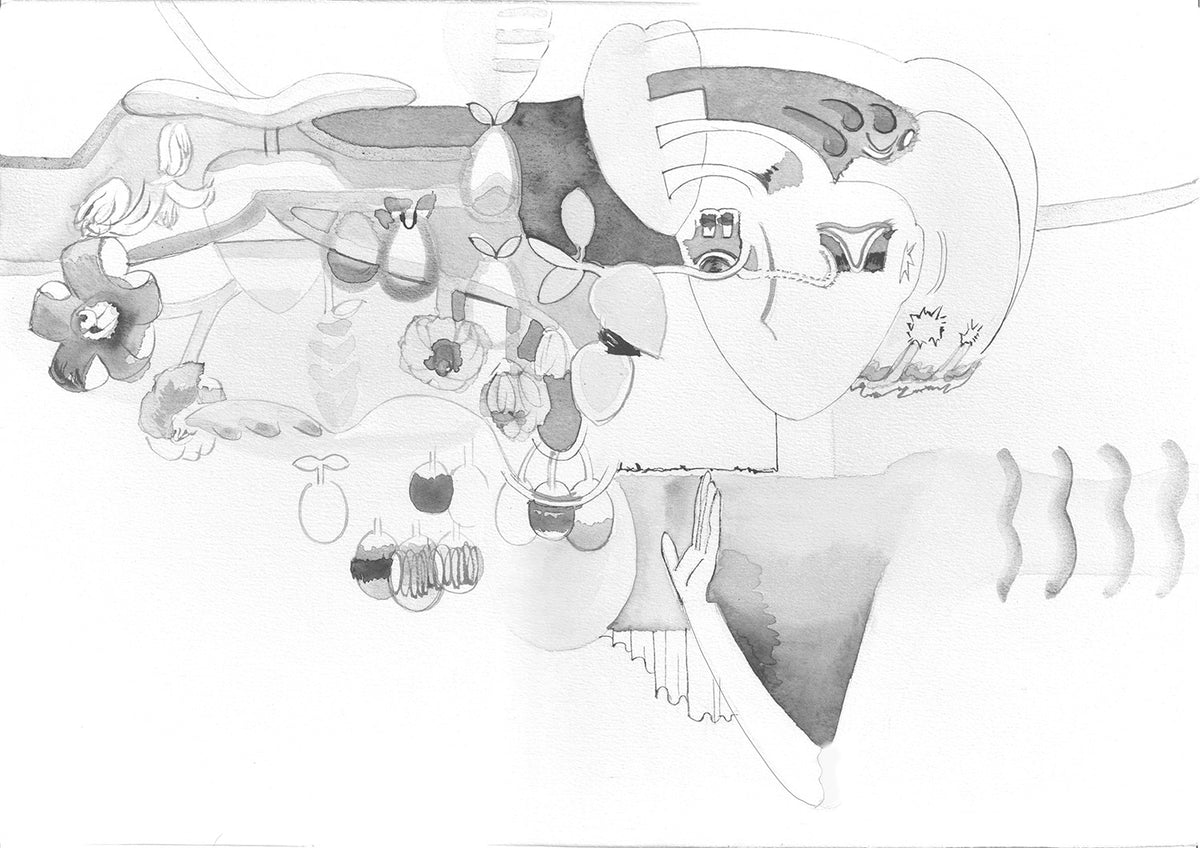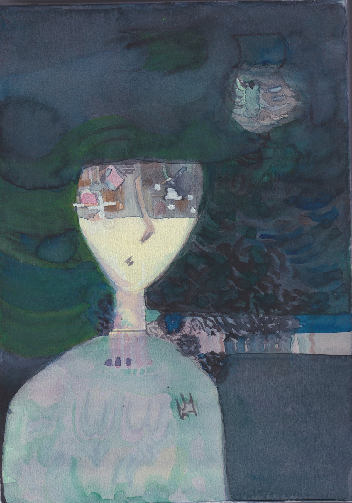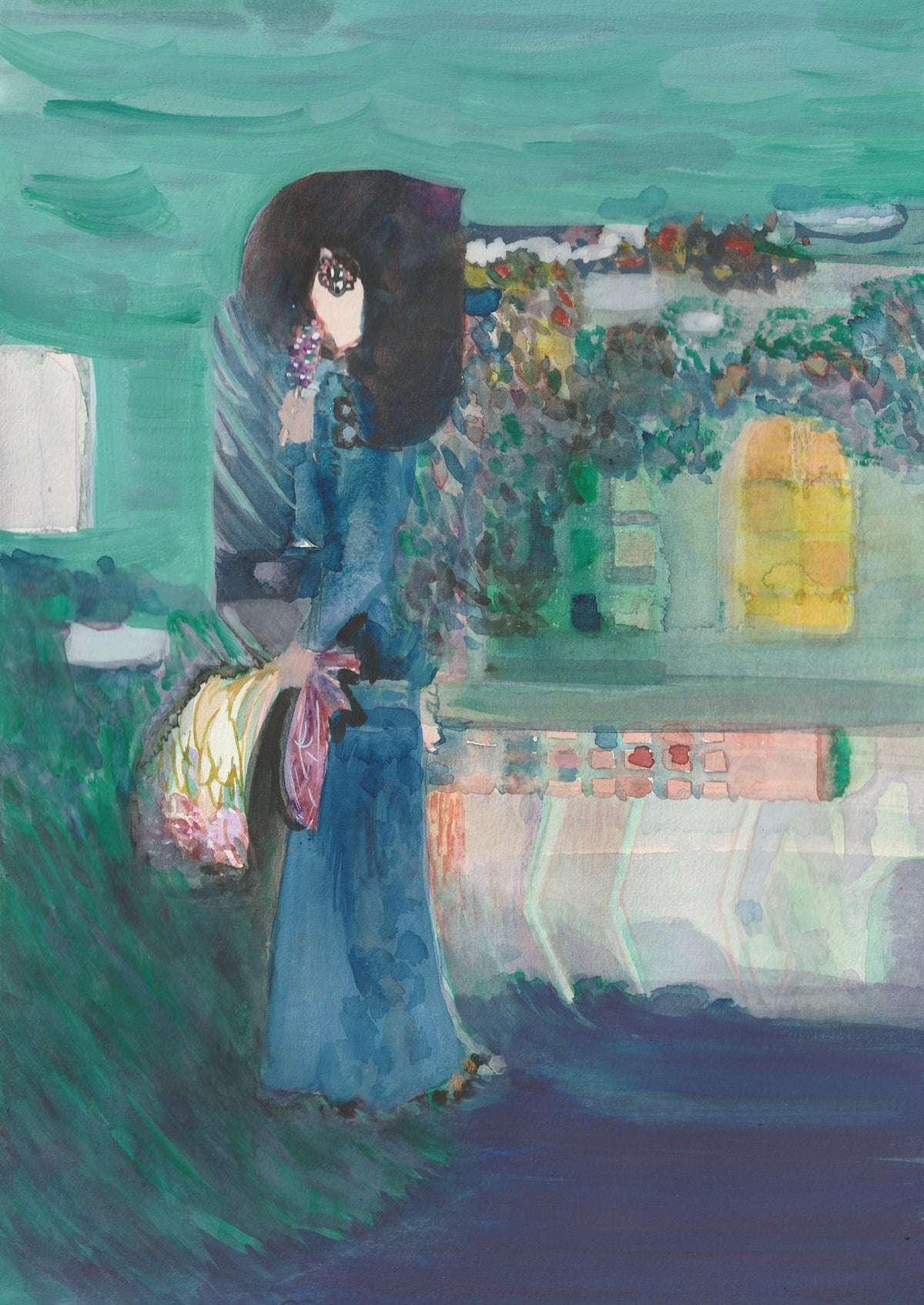 Just like drawing in a picture diary, she has a pristine motivation stemming from childhood to honestly express the emotions that struck her that day, as well as the artistry of layering watercolors, carefully calculated to create beautiful bleeding effects. The combination of these two elements creates an expression in which the abstract spiritual world coexists with the gentle warmth of the real world.